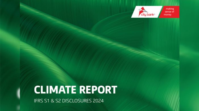 সিটি ব্যাংক পিএলসি তাদের ‘জলবায়ু প্রতিবেদন ২০২৪’ প্রকাশ করেছে। এ প্রতিবেদনটি আন্তর্জাতিক সাসটেইনেবিলিটি স্ট্যান্ডার্ডস বোর্ড প্রণীত আইএফআরএস এস ১ ও আইএফআরএস এস ২-এর সঙ্গে সামঞ্জস্য রেখে প্রস্তুত করা হয়েছে। সিটি