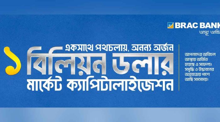 দেশের পুঁজিবাজারে এক ঐতিহাসিক মাইলফলক অর্জন করেছে ব্র্যাক ব্যাংক। বাংলাদেশের একমাত্র ব্যাংক হিসেবে এক বিলিয়ন মার্কিন ডলারের মার্কেট ক্যাপিটালাইজেশন অতিক্রম করে এই নৈপুণ্য অর্জন করেছে ব্যাংকটি। এই উল্লেখযোগ্য অর্জন ব্যাংকটির