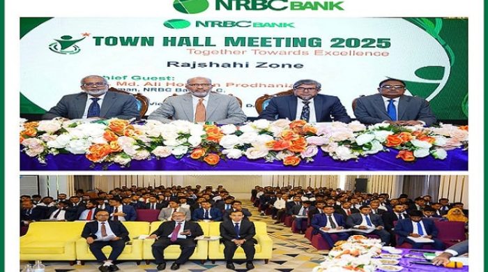রাজশাহীতে এনআরবিসি ব্যাংক পিএলসি-এর টাউন হল মিটিং অনুষ্ঠিত হয়েছে। শনিবার রাজশাহীর একটি হোটেলে আয়োজিত মিটিংয়ে প্রধান অতিথি হিসেবে উপস্থিত ছিলেন ব্যাংকের চেয়ারম্যান মো. আলী হোসেন প্রধানিয়া। ব্যাংকের ব্যবস্থাপনা পরিচালক ও
