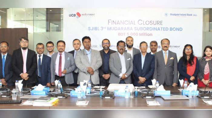 ইউসিবি ইনভেস্টমেন্ট লিমিটেড সফলভাবে শাহজালাল ইসলামী ব্যাংক পিএলসির ৫০০ কোটি টাকার ৩য় মুদারাবা সাবঅর্ডিনেটেড বন্ড সম্পন্ন করেছে। এই গুরুত্বপূর্ণ ইস্যুর সফল সমাপ্তি উপলক্ষে বুধবার (১৫ জানুয়ারি) শাহজালাল ইসলামী ব্যাংক পিএলসির