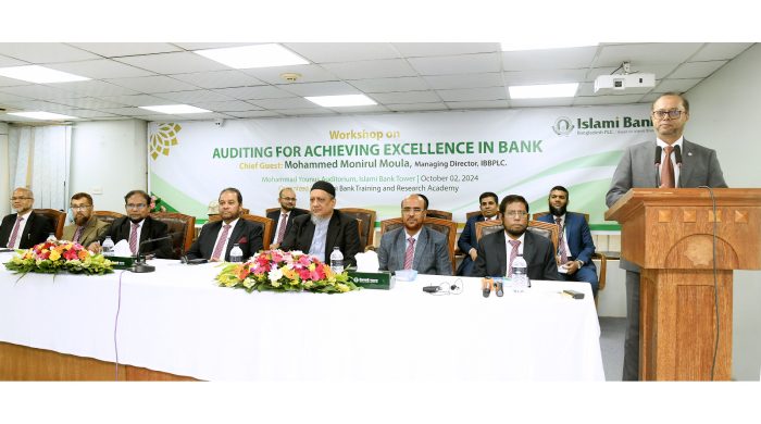 ইসলামী ব্যাংক ট্রেনিং অ্যান্ড রিসার্চ একাডেমি (আইবিটিআরএ)- এর আয়োজনে “অডিটিং ফর অ্যাচিভিং এক্সিলেন্স ইন ব্যাংক ” শীর্ষক দিনব্যাপী এক কর্মশালা ২ অক্টোবর ২০২৪, বুধবার, ইসলামী ব্যাংক টাওয়ারে অনুষ্ঠিত হয়। ব্যাংকের