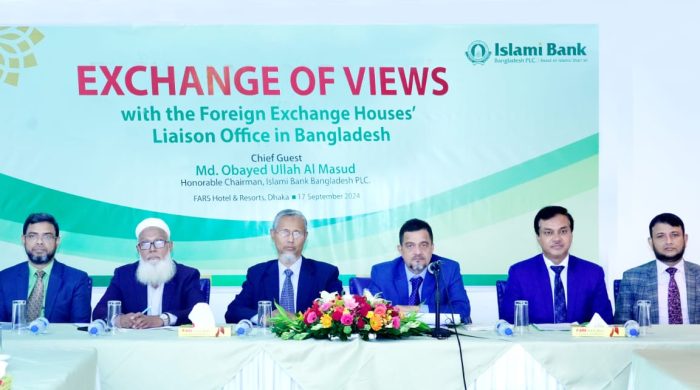 ইসলামী ব্যাংক বাংলাদেশ পিএলসি-এর উদ্যোগে ফরেন রেমিট্যান্স হাউসগুলোর বাংলাদেশ লিয়াজোঁ অফিসের প্রতিনিধিদের সাথে মতবিনিময় সভা ১৭ সেপ্টেম্বর ২০২৪, মঙ্গলবার রাজধানীর একটি হোটেলে অনুষ্ঠিত হয়। ব্যাংকের চেয়ারম্যান মোঃ ওবায়েদ উল্লাহ আল